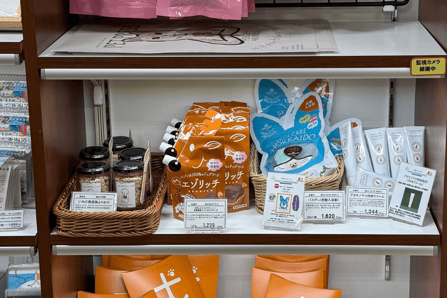 どさんこプラザ札幌店では、北海道産素材を使用したわんちゃん用補助食「エゾリッチ」を販売しています。
